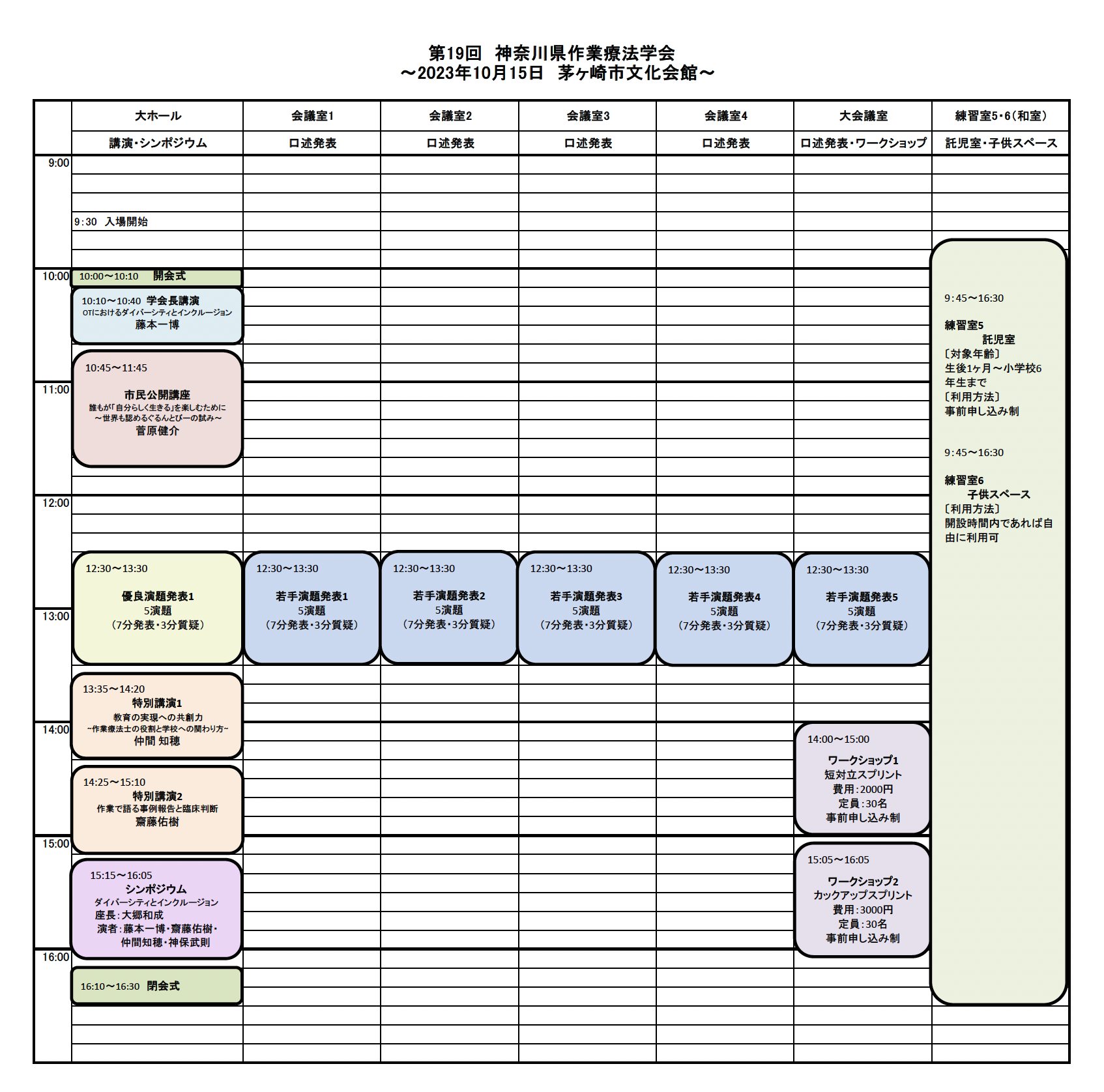 学会会場のタイムテーブルを公開します。